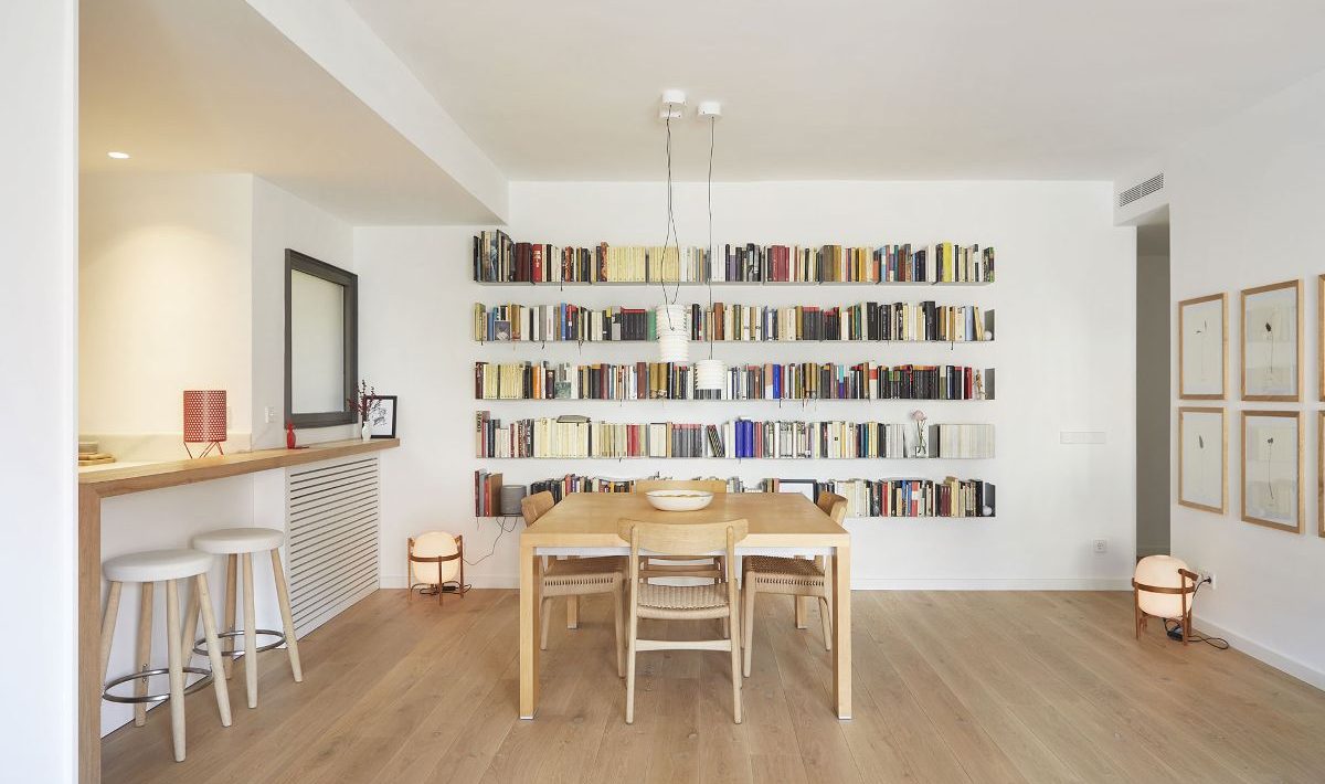 Beveik 80 m² ploto ir iki 3 metrų aukščio lubų minimalistiniame name yra svetainė-valgomasis-virtuvė, vonios kambarys ir du miegamieji. „Jis priklauso 60-metei moteriai, kuri studijavo istoriją ir yra aistringa skaitytoja. Iš tiesų, ji keletą metų dirbo bibliotekininke, todėl pagrindinė knygų spinta yra tokia ryški“, – sako García.