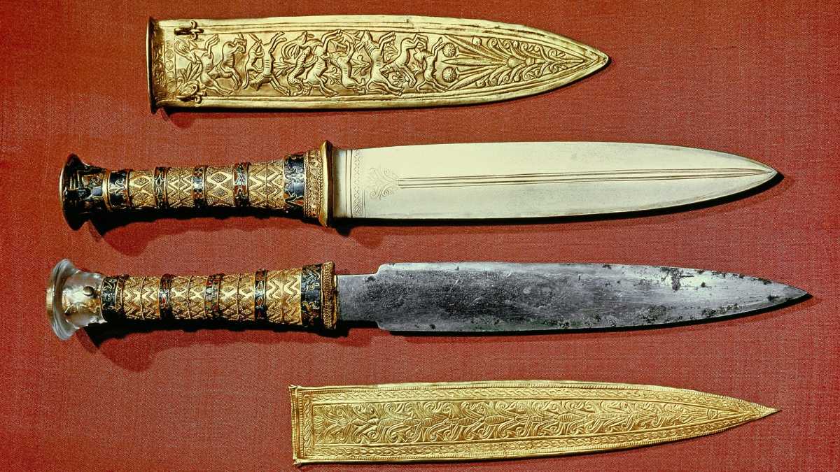 Apyrankė ir kepurė iš šio didingo senovės relikto iš tiesų yra papuoštos auksu. Tačiau jos nebuvo pagamintos iš vieno iš tuo metu naudotų metalų. Jos pagamintos iš meteorituose esančio geležies tipo, kuris nukrito iš dangaus. Tuo metu tai turėjo būti toks pat neįprastas, kaip ir dieviškas įvykis. Manau, tai buvo dievų darbas.