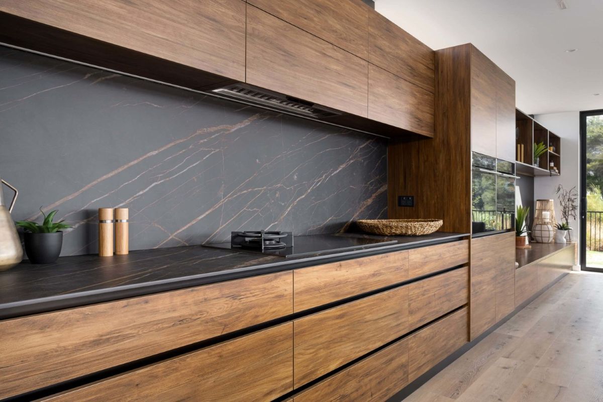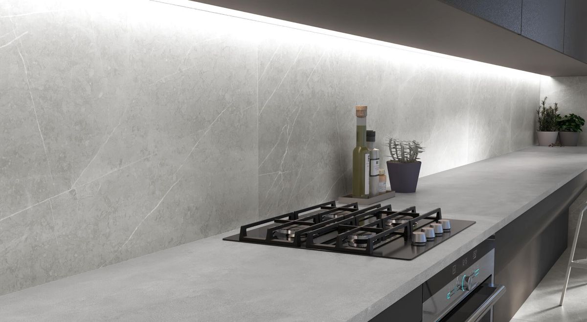Kita virtuvės dizaino tendencija – stalviršio ir sienos tęstinumas. Šis sprendimas, kurį propaguoja tokios pramonės lyderės, leidžia abi paviršius suvienodinti į vientisą paviršių, pašalinant vizualų kontrastą ir jungtis, kurias sukuria tradicinės plytelės.