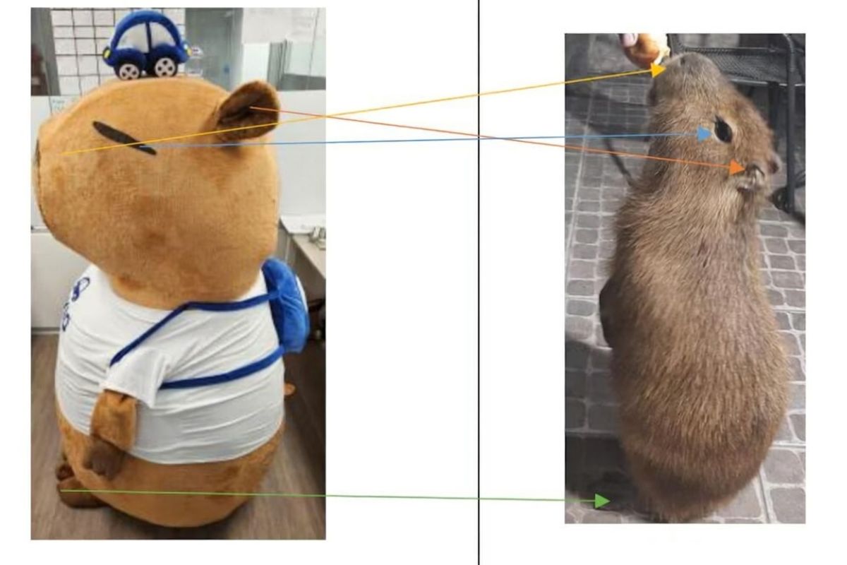 Direktoratas apibūdino kapibarą kaip graužiką su ilgu, tvirtu kūnu, trumpomis galūnėmis, plačia galva, mažomis apvaliomis ausimis, ilgu snukiu ir akimis, esančiomis galvos gale. Remiantis analize, kostiumas tiksliai atkūrė šias gyvūno savybes.