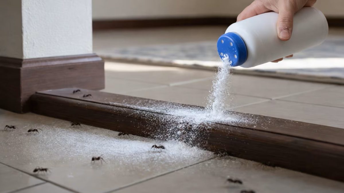 Todėl yra paprastesnė ir prieinamesnė alternatyva: pėdų milteliai. Šis produktas, kurį dauguma žmonių turi namuose, gali padėti atbaidyti skruzdėles nenaudojant stiprių medžiagų.