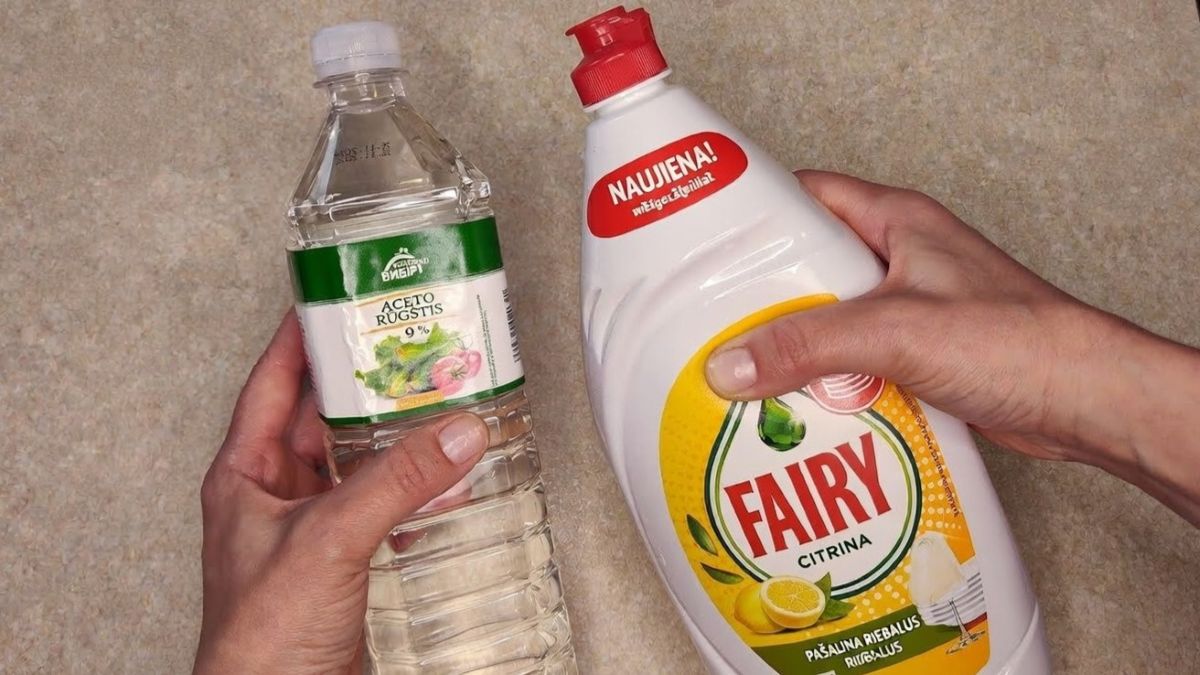Svarbiausia? Įpilkite vienodą kiekį acto ir vandens ir įlašinkite keletą lašų muilo. Turime gauti vienalytį mišinį, kurį lengva purkšti ir kuris mažai putoja.