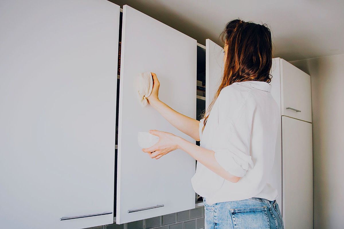 Valant vidų spintelių, pirmiausia reikia jas visiškai ištuštinti. Pašalinkite visus trupinius ir dulkes, kruopščiai išvalykite ir prieš pertvarkydami įsitikinkite, kad jos yra sausos. Šis žingsnis yra būtinas, kad baldai nesideformuotų ir neatsirastų dėmių, taip pratęsiant jų tarnavimo laiką.