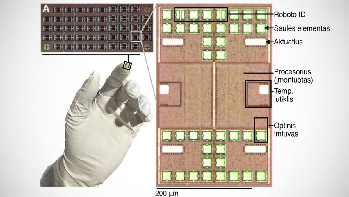 Ką gali daryti šis miniatiūrinis robotas, turėdamas tokius matmenis? Jis gali plaukti bet kokiame skystyje, jausti ir reaguoti į temperatūros dirgiklius ir dirbti kelis mėnesius. Jo darbui nereikia jokių laidų, nuotolinio valdymo pultų ar žmogaus valdomų sistemų.