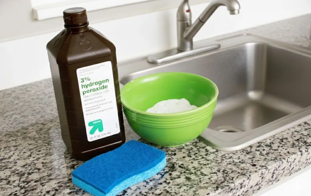 Kaip valyti virtuvės kriauklę vandenilio peroksidu ir sodos bikarbonatu