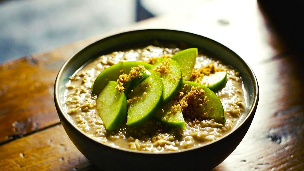 Kaip paruošti žaliųjų obuolių, avižinių dribsnių ir imbiero atolę